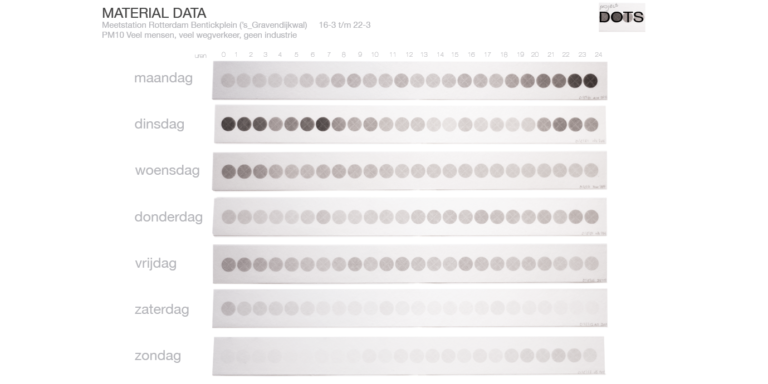 Introducing airing as a design approach, the paper proposes a shift from detached forms of representation (such as abstract tables and numbers) to situated, real-world engagement with data. Airing data through materiality emphasizes the active role of materials in embedding data within the physical and social contexts from which it emerges. In this paper, airing data through materiality is discussed in the following case studies (pictures below): Dots